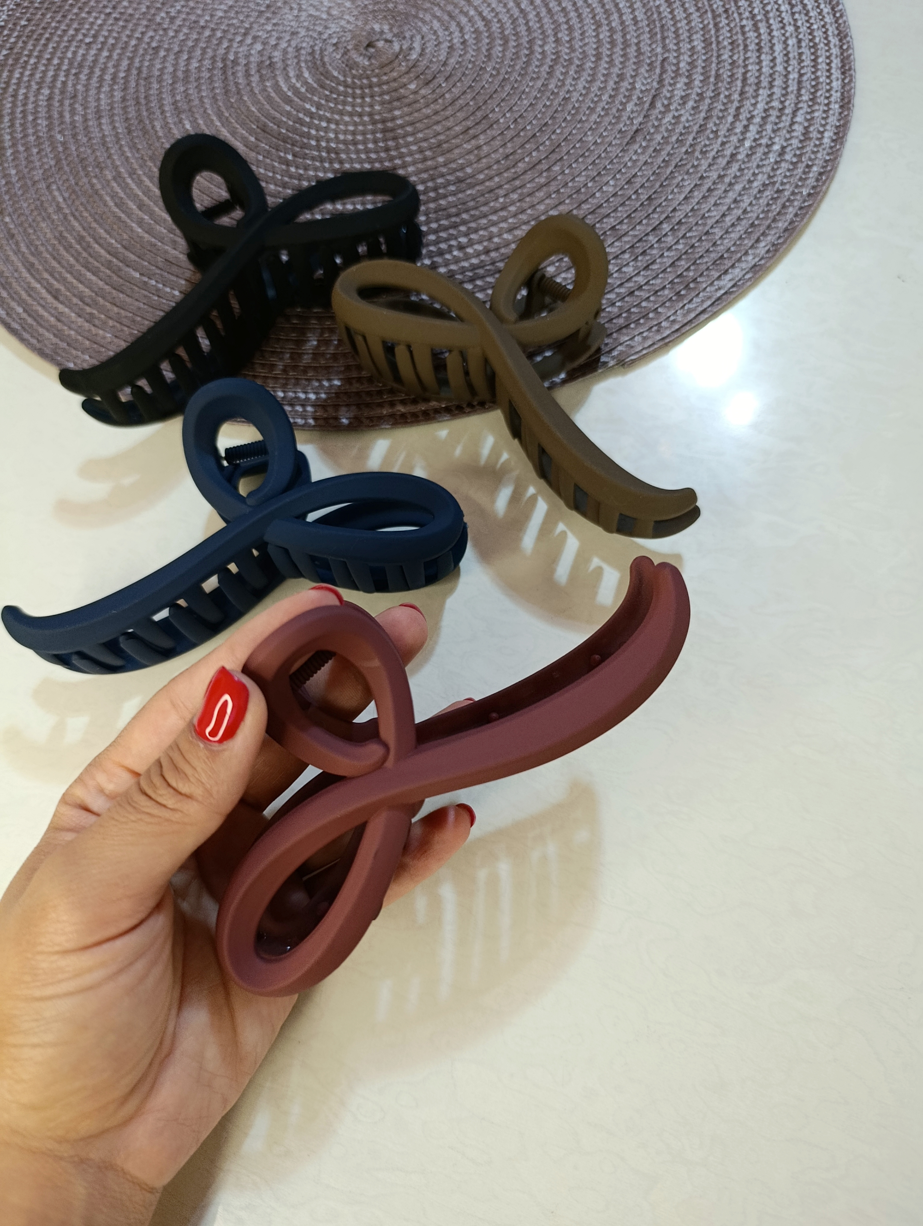 کیلیپس دفرمه جنس بدنه پلاستیکی با رنگ های تیره و اندازه قدی حدود ۱۰-۱۲ سانتی متر مناسب برای موهای بلند و کوتاه